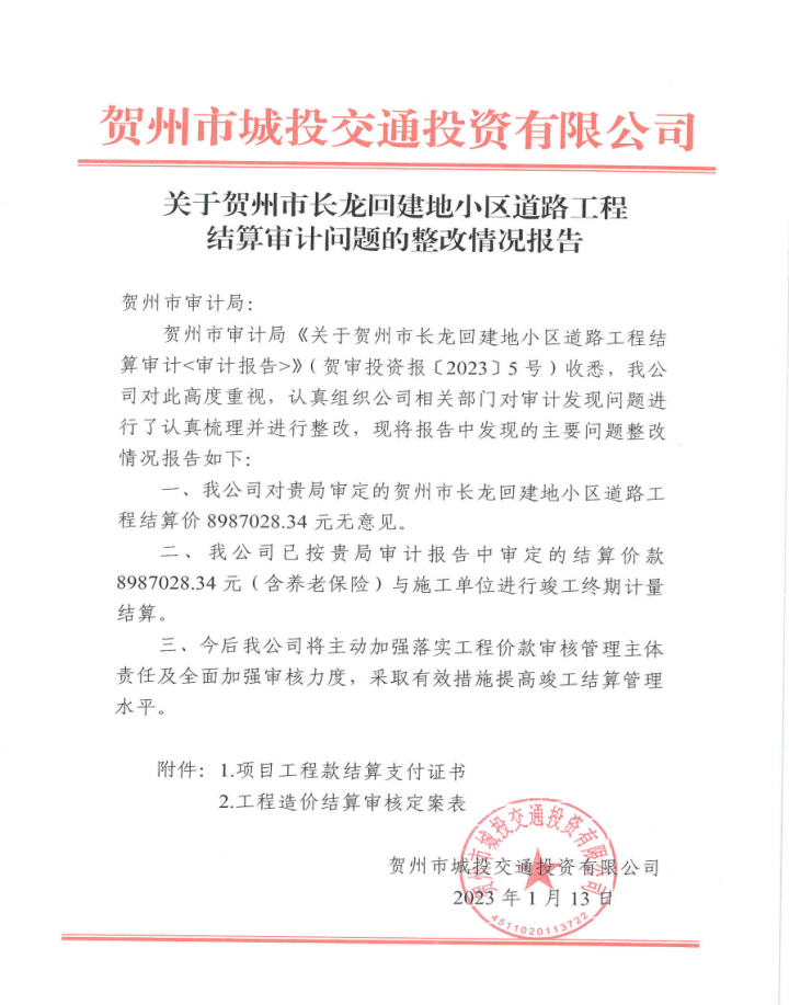 下一篇:城投公司關(guān)于望高至擔(dān)桿嶺水廠原水輸水管道項目結(jié)算審計發(fā)現(xiàn)問題整改情況報告