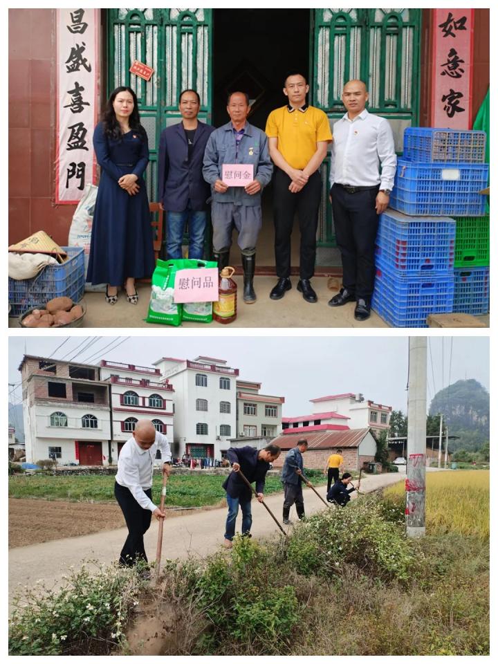 何金存同志1976年3月參軍入伍,在對越自衛(wèi)反擊戰(zhàn)中負責物資保障工作,大家聽著何金存老人訴說那段崢嶸歲月,不由得紅了眼眶,對他們?yōu)閲易鞒龅呢暙I表達了崇高敬意并自發(fā)幫助老人清理門前道路兩旁的雜草,送上了米、油等生活物資,并囑咐他在日常生活中保持良好的心態(tài),科學飲食,保重身體。一句句問候、一聲聲祝福,讓何金存老人家感受到了黨組織濃濃的關(guān)愛和作為退役軍人的榮譽感與自豪感。