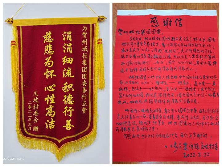 村委致謝贈錦旗 點贊城投集團團委志愿服務(wù)2022-05-24